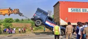UP Accident: अलीगढ़ के लोधा थाना क्षेत्र में बाईपास हाईवे स्थित चिकावटी मोड़ पर आज सुबह एक दर्दनाक सड़क हादसा हुआ। फिरोजाबाद से मुजफ्फरनगर एक मुलजिम को लेकर जा रही पुलिस वैन खड़े कैंटर से जा भिड़ी। इस टक्कर में एक दरोगा और तीन पुलिसकर्मियों समेत पांच लोगों की मौके पर ही मौत हो गई, जबकि एक पुलिसकर्मी गंभीर रूप से घायल हो गया।