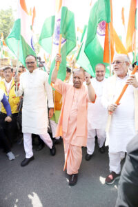 Lucknow (Tiranga Yatra) : मुख्यमंत्री योगी आदित्यनाथ ने बुधवार को लखनऊ स्थित अपने सरकारी आवास से “भारत शौर्य तिरंगा यात्रा” को रवाना किया। उन्होंने हाथ में तिरंगा लेकर खुद यात्रा का नेतृत्व किया। यह यात्रा ऑपरेशन सिंदूर की सफलता और भारतीय सेना के साहस को सम्मान देने के लिए शुरू की गई है। सीएम योगी ने प्रदेश की जनता की ओर से प्रधानमंत्री नरेंद्र मोदी, सेना के जवानों, पूर्व सैनिकों और युवाओं का धन्यवाद किया। उन्होंने कहा कि पूरा देश हमारे सैनिकों के पराक्रम और बलिदान को सलाम कर रहा है।