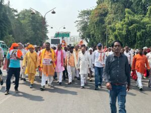 सम्मेलन के उपरांत सभी संतों और उपस्थित जनसमूह ने गांधी भवन से परिवर्तन चौक स्थित सुभाष चंद्र बोस की प्रतिमा तक एक पदयात्रा निकाली। पदयात्रा के दौरान “मानव मानव एक समान…” का उद्घोष वातावरण में गूंजता रहा, जो एकता, भाईचारे और नशामुक्त भारत की उम्मीदों का स्वर बन गया। इस ऐतिहासिक महासम्मेलन में लगभग 1500 संतों और 4000 से अधिक श्रद्धालुओं ने भाग लिया। इसके साथ ही सामाजिक, राजनीतिक और धार्मिक क्षेत्र की अनेक हस्तियां भी उपस्थित रहीं, जिनमें विधायक अमरेश कुमार रावत, विधायक जयदेवी कौशल, पारख महासंघ के उपाध्यक्ष तेजीराम रावत, भाजपा, एससी मोर्चा के पदाधिकारी विकास किशोर आशू, राम कुमार राही, शिशिर यादव, विनय कुमार वर्मा, निर्मल वर्मा इत्यादि। सामाजिक कार्यकर्ता एवं संत समर्पित संगठन जैसे साईं धाम के अमित शर्मा व पायल शर्मा, शकुंतला निषाद, रेखा सिंह एडवोकेट, कीर्ति राठौर सहित कई सम्मानित प्रतिनिधि। सम्मेलन ने विशेष रूप से विंग कमांडर व्योमिका सिंह और कर्नल सोफिया कुरैशी जैसी भारत की वीरांगनाओं को भी श्रद्धांजलि और सम्मान अर्पित किया, जिन्होंने देश की सुरक्षा में गर्वजनक भूमिका निभाई है।