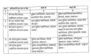 1990 बैच के आईपीएस अफसर एमके बशाल को पुलिस महानिदेशक उत्तर प्रदेश कार्पोरेशन से पुलिस महानिदेशक महासमादेष्टा, अपर पुलिस महानिदेशक पीटीसी के पद पर तैनात 1994 बैच के आईपीएस अधिकारी जय नारायन सिंह को अपर पुलिस महानिदेशक, उत्तर प्रदेश पॉवर कार्पोरेशन बनाया गया है.