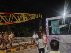 बस में सवार लगभग 30 से 35 यात्रियों में हादसे के बाद चीख-पुकार मच गई। हालांकि राहत की बात यह रही कि सभी यात्रियों को मामूली चोटें आईं और कोई जनहानि नहीं हुई। स्थानीय लोगों और पुलिस की मदद से सभी यात्रियों को सुरक्षित बाहर निकाल लिया गया। सूचना मिलते ही पुलिस मौके पर पहुंची और राहत एवं बचाव कार्य शुरू किया। क्रेन की मदद से क्षतिग्रस्त बस को हटाकर सड़क को खाली कराया गया, जिससे यातायात जल्द सामान्य हो सका। प्रारंभिक जांच में हादसे की वजह अचानक सामने आए ट्रक को बचाने के प्रयास में बस का अनियंत्रित होना बताया जा रहा है। फिलहाल पुलिस पूरे मामले की जांच कर रही है और आगे की वैधानिक कार्रवाई जारी है।